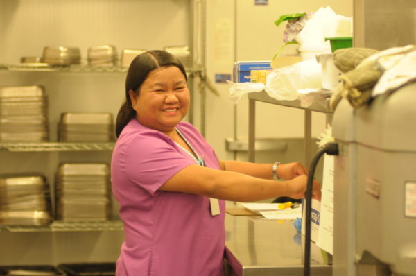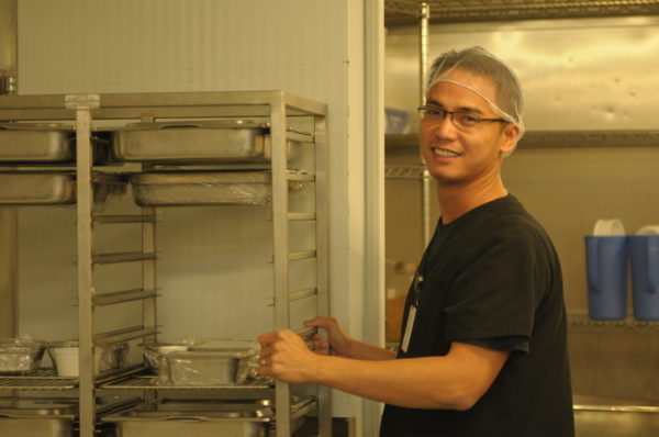 Meet Luciano, our Meschgiah at the Saul & Claribel Simkin Centre. He works an average of 20 hours per week. He starts at 6:30am to start the ovens as we have cooks that start at that time and he typically stays until 9:30am to 10:00am. Below are various pictures of Luciano overseeing different aspects of production. He makes sure that our products are kosher certified, checking lettuce and some other vegetables. In addition, he cleans and kosherizes dishes, as well as ensures our cooks are keeping items separated.
